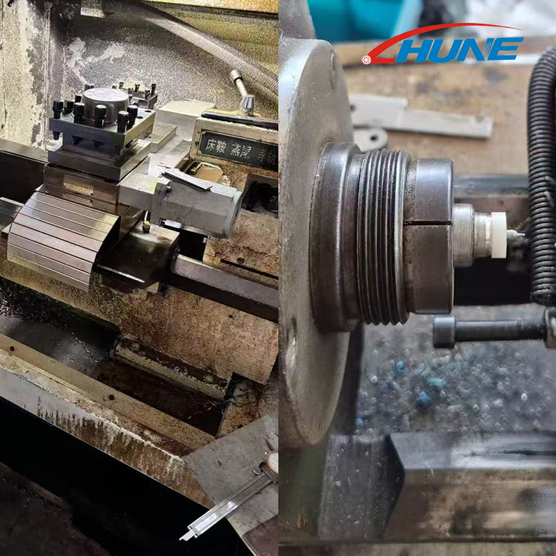 Di bengkel ini, Master Cai menggunakan alat tajam khas untuk mengisar sedikit alur acuan dengan sedikit. Pulley sangat kecil, kedalaman alur hanya boleh menjadi 0.6mm. "Ia seperti mengasah tongkat - walaupun milimeter off, dan ia tidak berguna," katanya. Acuan yang diselaraskan hampir memegang bahan itu, dan kemudian kami menyerahkannya kepada pelarik CNC: tetapkan parameter, dan biarkan mesin membentuk F-jenis pulley ke dalam jenis U. Sampel dibuat!