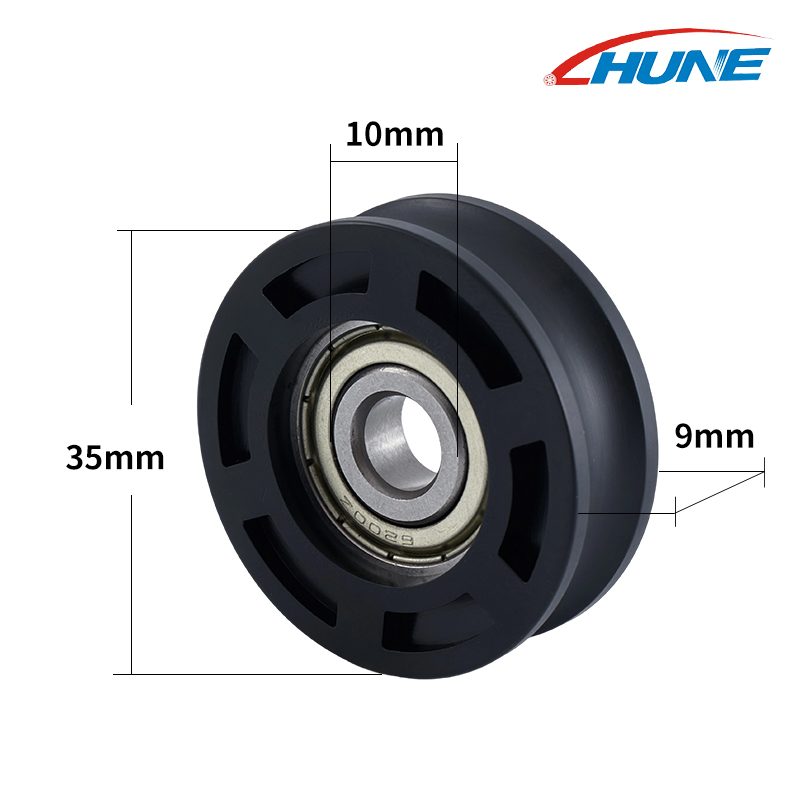 Dengan reka bentuk alur berbentuk U, roller ini sesuai untuk aplikasi trek dan penghantar, menawarkan penjajaran yang stabil dan rintangan haus. Pilihan galas 6100zz dan 6200zz tersedia untuk memenuhi kapasiti beban yang berbeza dan keperluan struktur, menjadikan pulley ini serba boleh untuk kedua-dua mekanisme gelongsor ringan dan tugas berat.