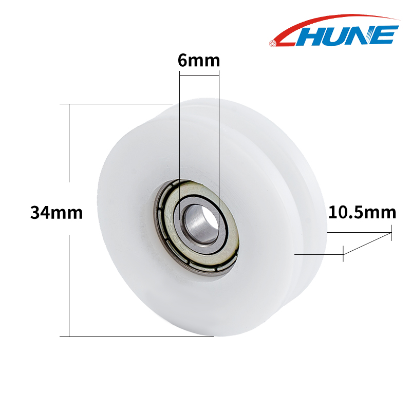 Rumah / Produk / Pulley galas plastik / Pulley bearing berbentuk U. / U alur nilon pusingan pulley bola galas roda roller untuk tingkap pintu